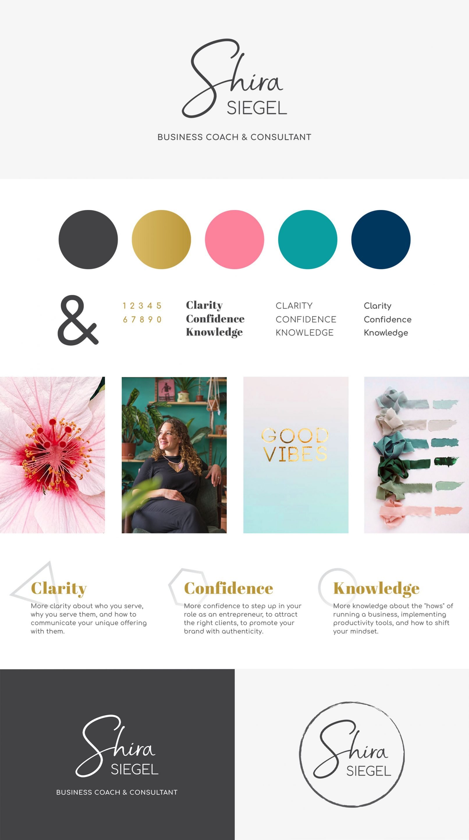 Brand development and logo design for Shira Siegel – Business Coach & Consultant. Project included logo, visual style, color scheme, graphics, social media, presentation and workshop banners.